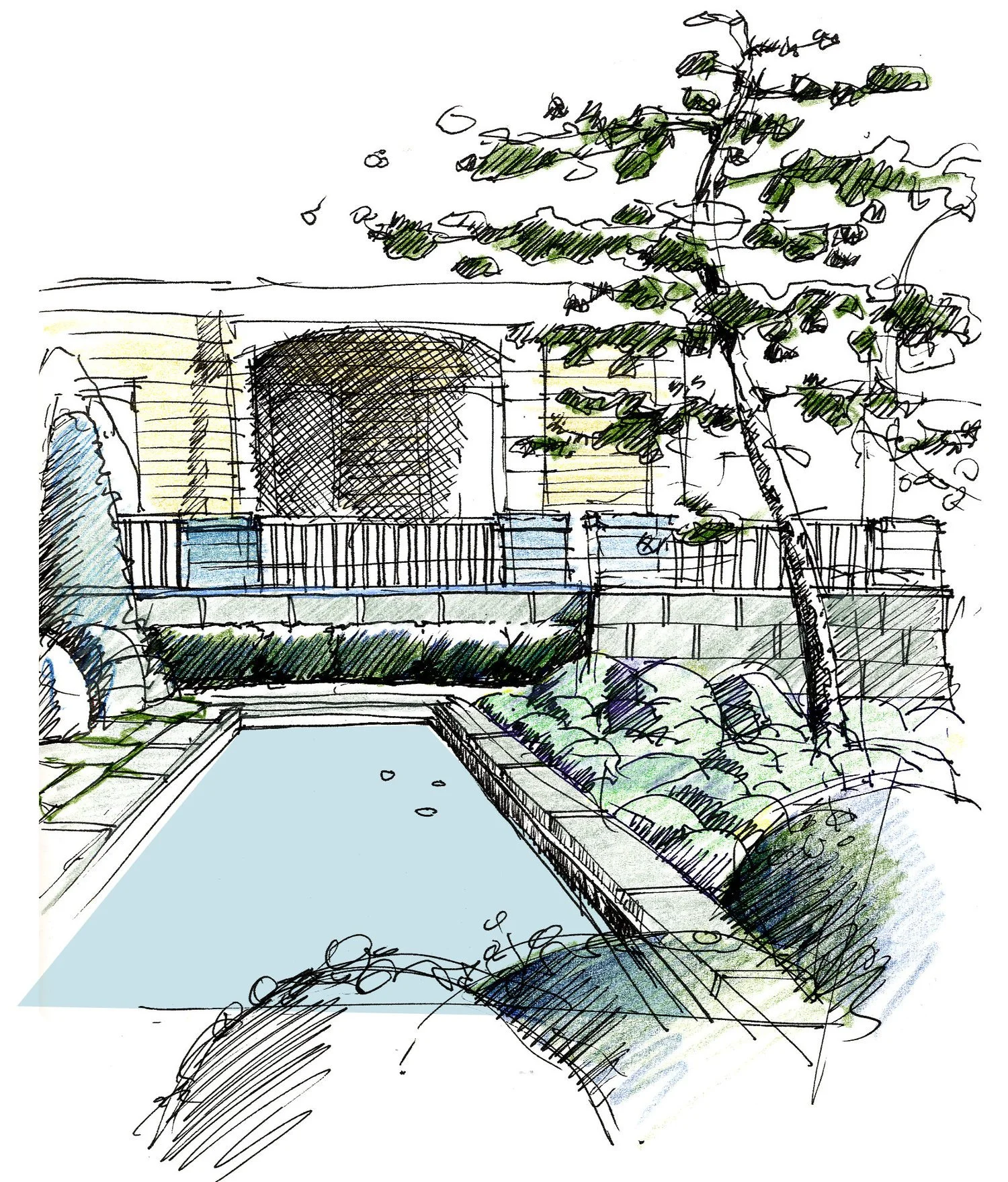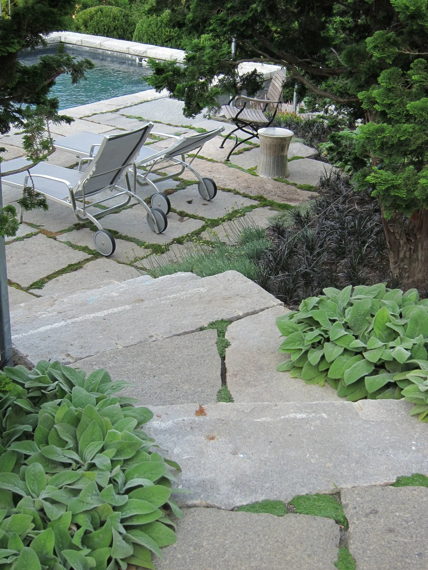 The Garden here was created to provide a refuge from the city. Located just outside NY, the garden relies on clean and sculptural forms to provide a sense of place and statement. More rustic and ethereal plantings of rustic cedar and magnolia create a balance. Reclaimed stone provides a sense of age.