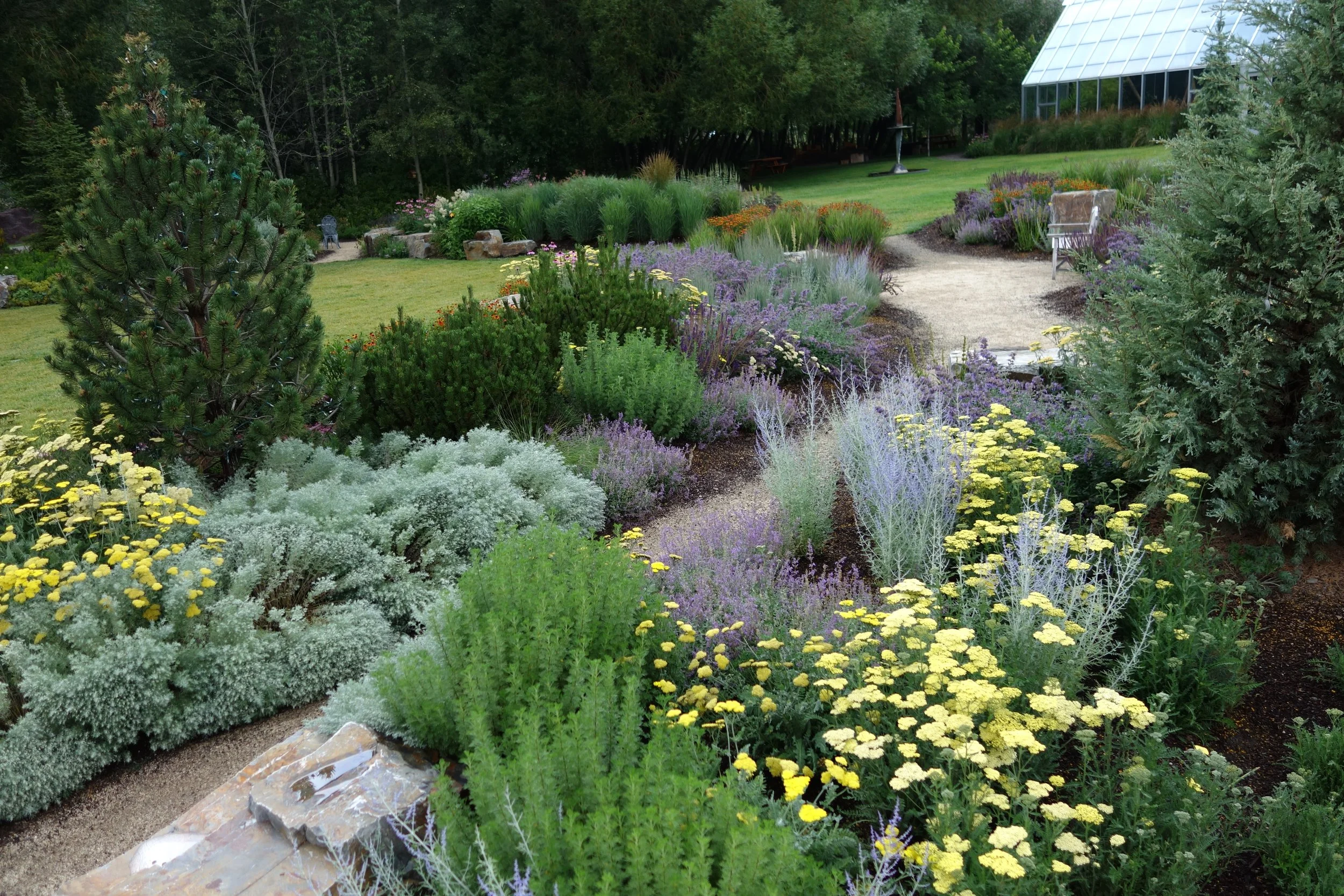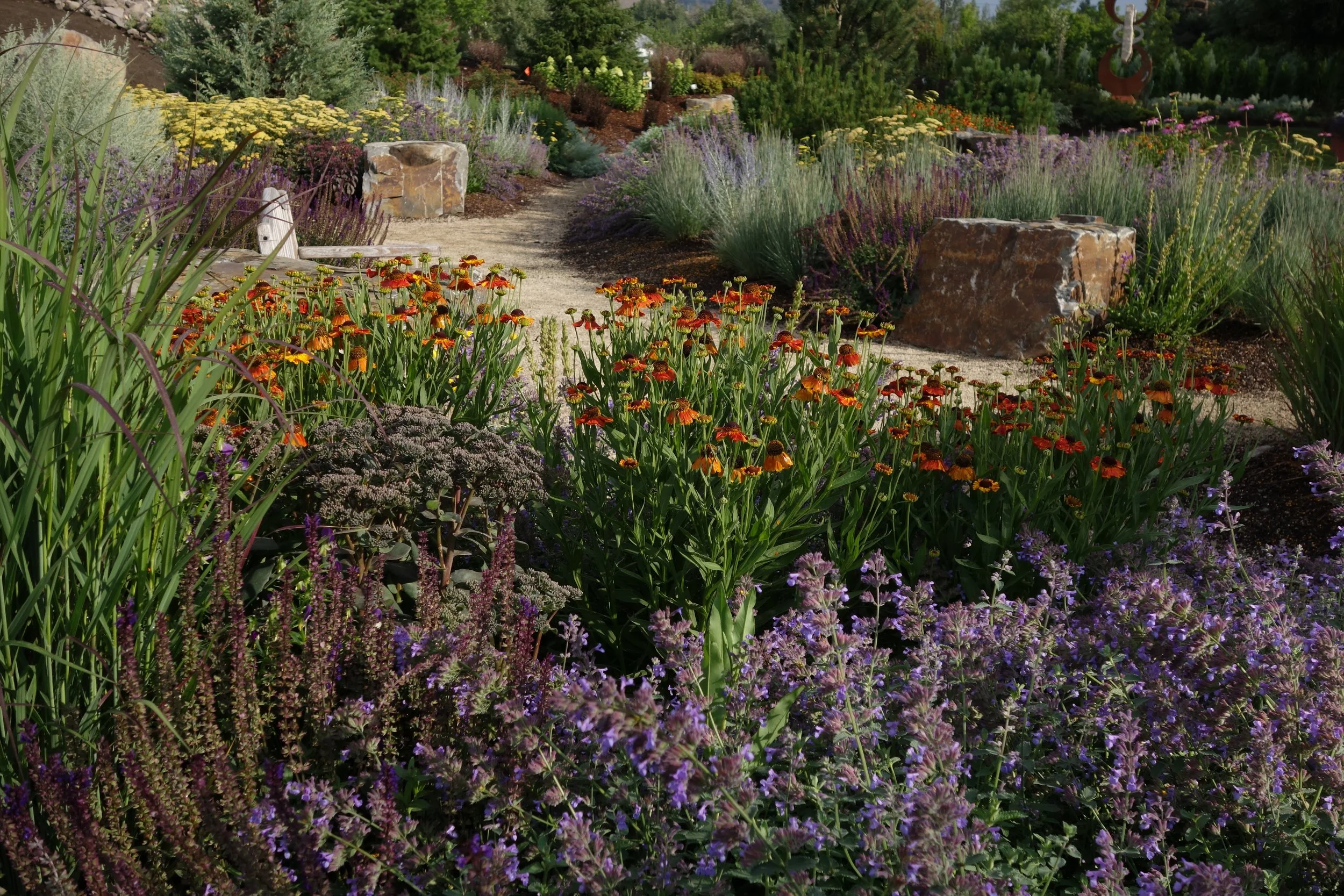 BYLA was tasked with the creation of a perennial garden that would showcase native and non-native plants that add value and ecology to garden areas in the high desert west. The Sawtooth Botanical garden displays a mix of both sun areas and shade and also incorporates juniper and other shrub material to allow the perennial garden to blend into adjacent sagebrush steppe demonstration areas.