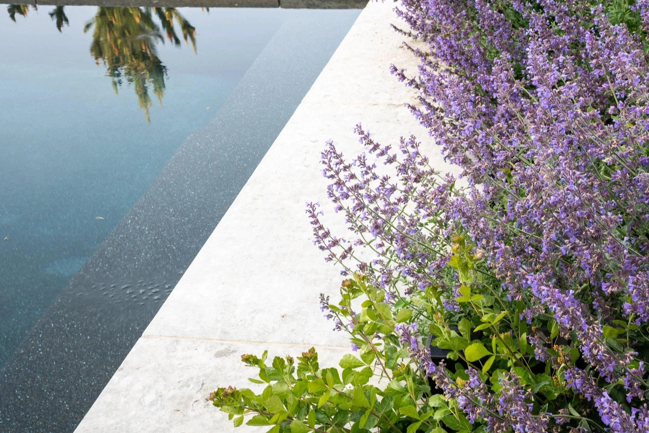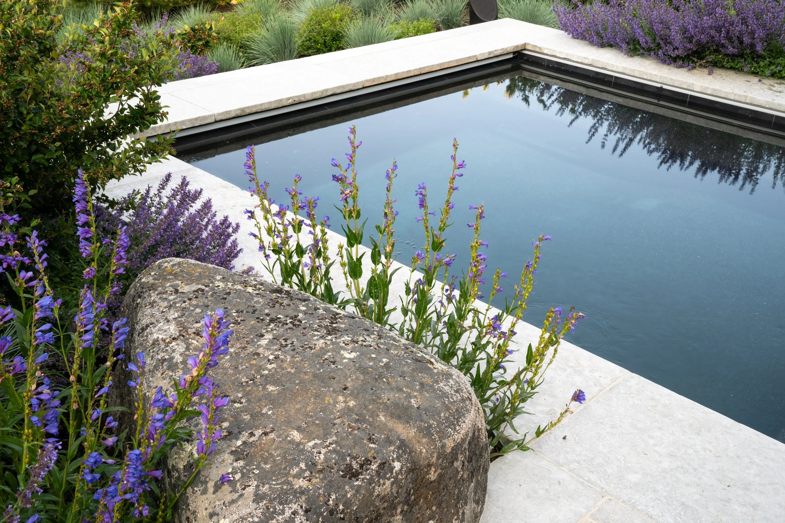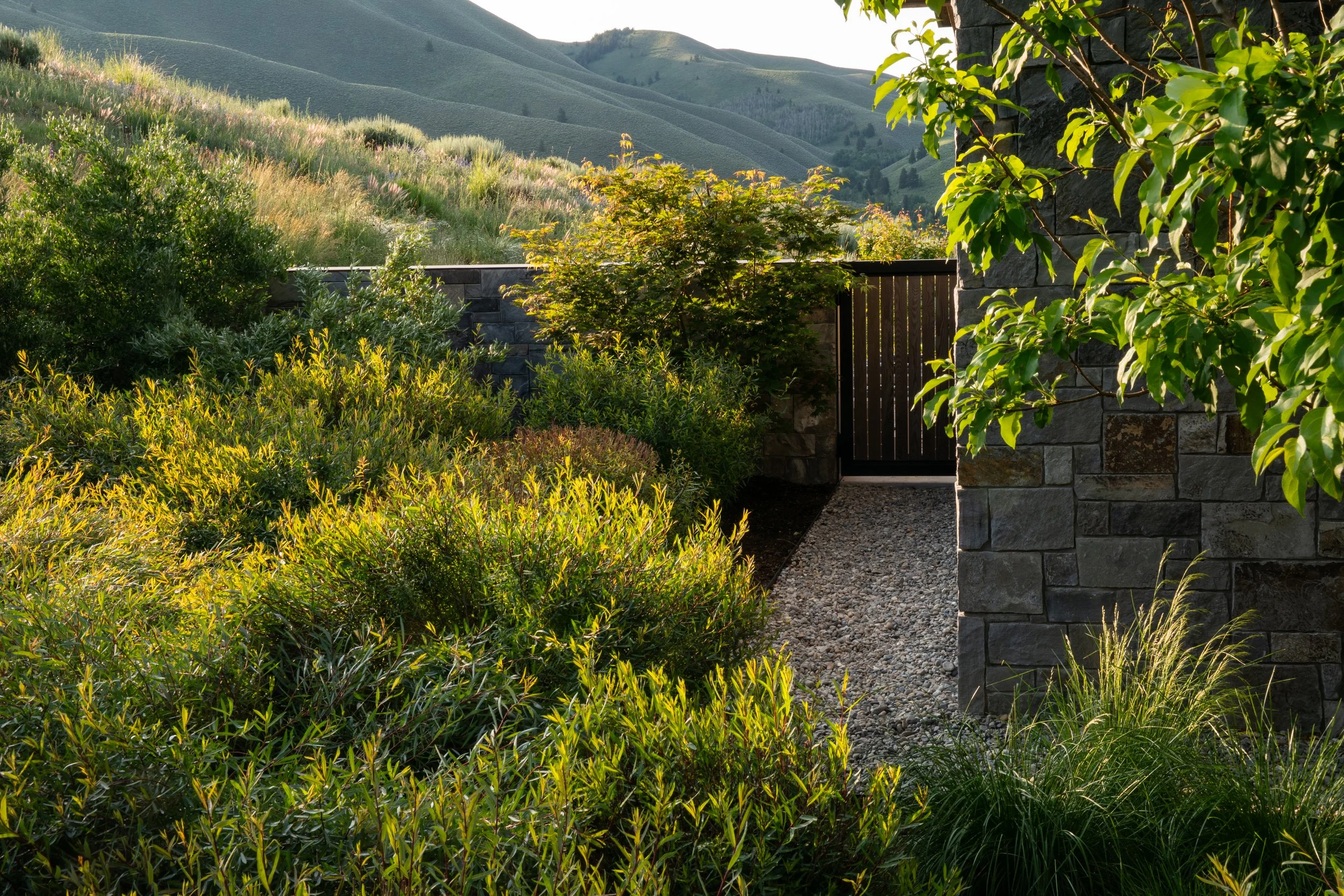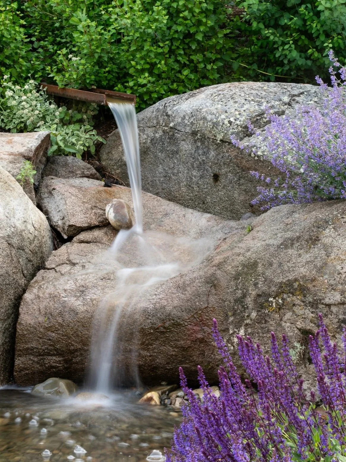 Tucked away on a hillside this garden integrates with the natural surroundings and also sets aside built spaces that create a cozy and fun vibe. Here we used large boulders and a subtle use of water as a nod to a mountain brook. The small pool holds its own space; a sunken seating area takes advantage of the east side of the property to create a cool evening spot.